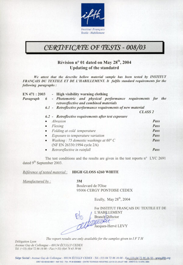 不要以為只要你買了一件由 EN471 認證的衣服後, 你便能安全地在馬路上工作。其實你還需要注意到當你第一次穿著的時候,有些參數只能達到最低標準。可是當清洗過後,織物的品質及反射帶便會耗損。安全度的便降低。