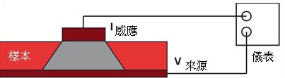 測量材料的電阻(ohm)。即是將測試材料的反面於在兩個電極之間。
