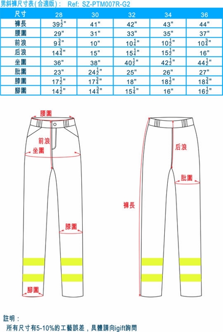 1.) 工程衫尺寸 2.) 工程褲尺寸 3.) 工程制服尺寸 4.) 工作制服/連身工作服尺寸