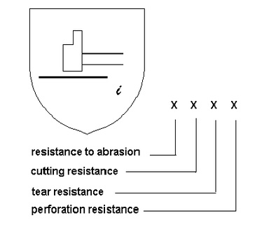 EN388 這標準就各類防護手套在磨損,刀切,撕裂和穿刺、物理和機械侵略方面作評估。針對特定風險,手套的性能水平評級被為分1-5級,其中4級或5級是最好的。